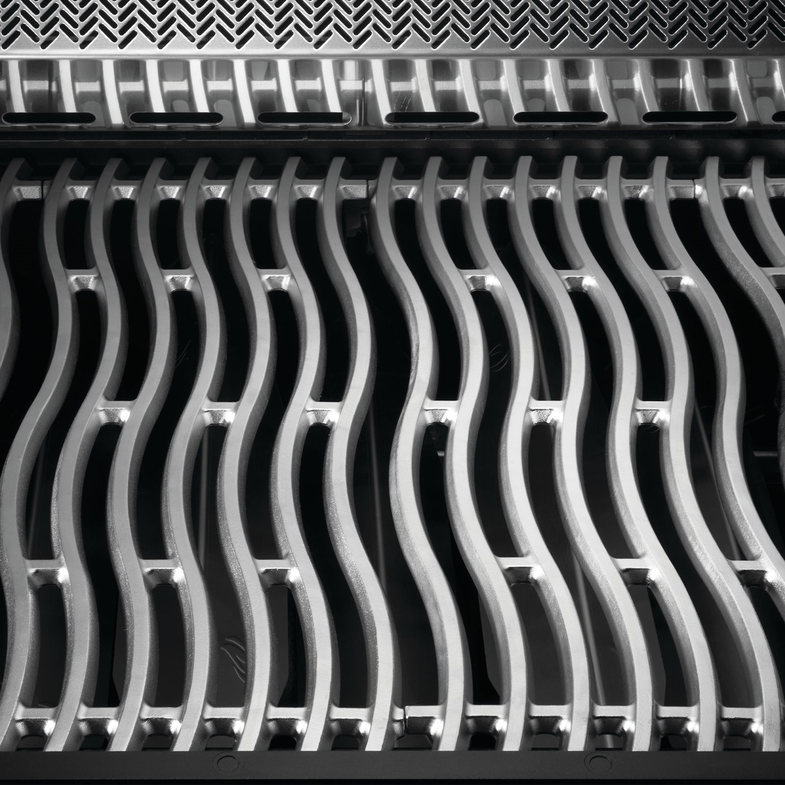 Eksklusive riste i støbt rustfrit stål: Dette er grillens "hemmelige våben". WAVE™ ristene er bygget i støbt rustfrit stål. Det betyder, at du får den suveræne varmelagring og tekstur fra støbejern, men med den nemme vedligeholdelse og holdbarhed fra rustfrit stål. Det er det bedste fra to verdener.
