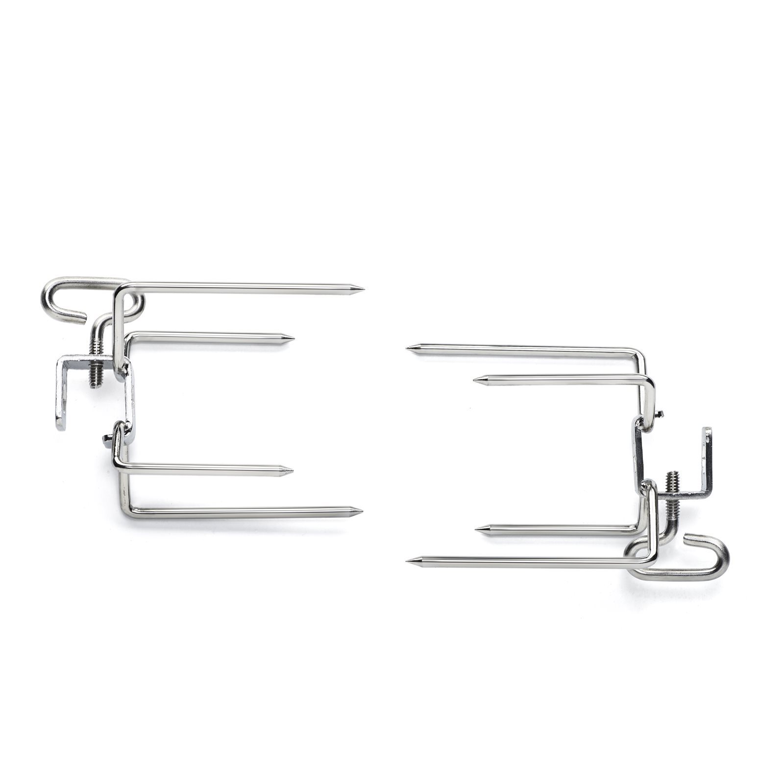 Universel pasform: Gaflerne er ekstremt alsidige. De passer på alle rotisserispyd med et sekskantet tværsnit på op til 12 mm eller firkantede spyd på op til 8 mm.