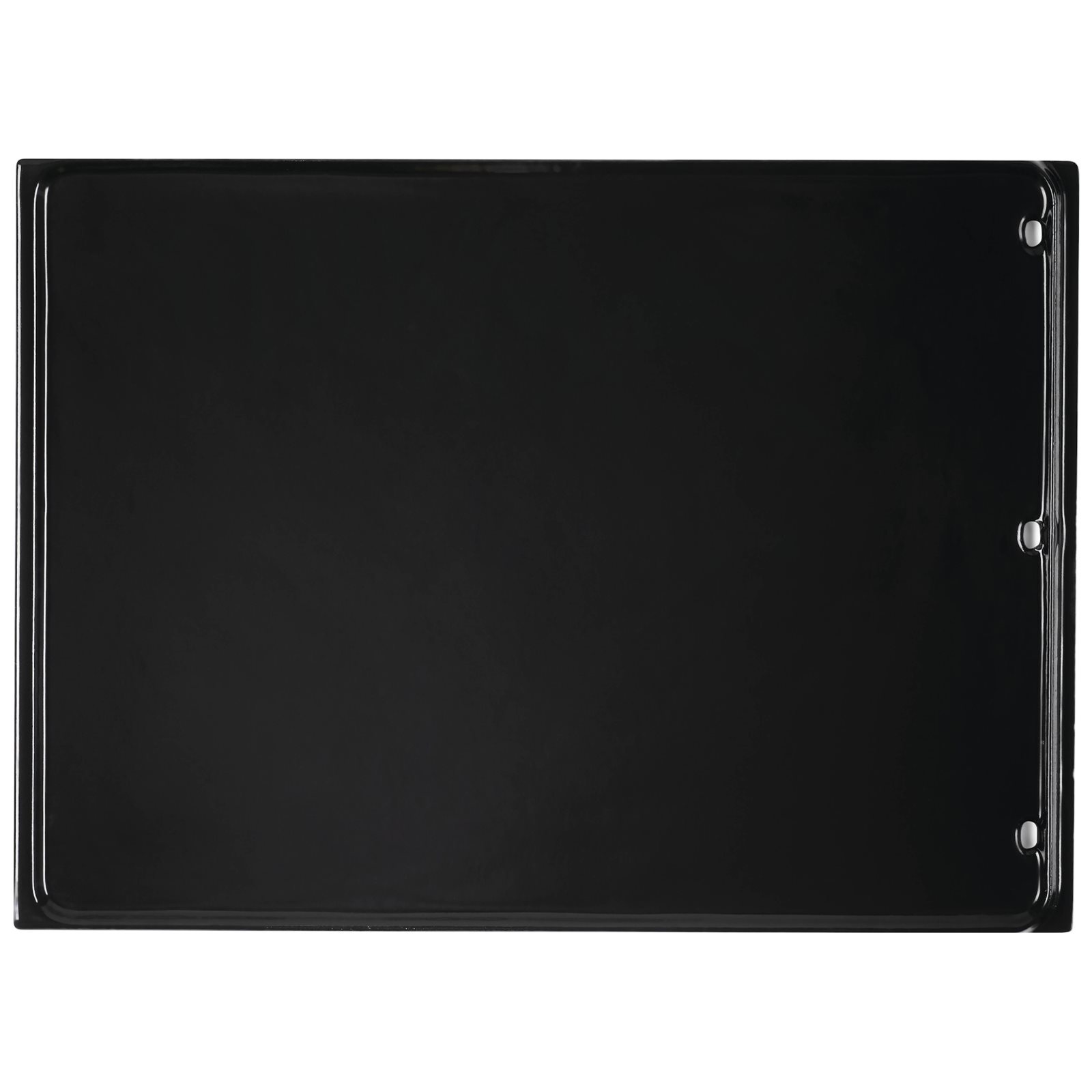 Smart fedtafløb: Tre strategisk placerede huller i den ene ende sørger for, at overskydende fedt løber væk. Det giver sundere mad og minimerer risikoen for fedtbrand.